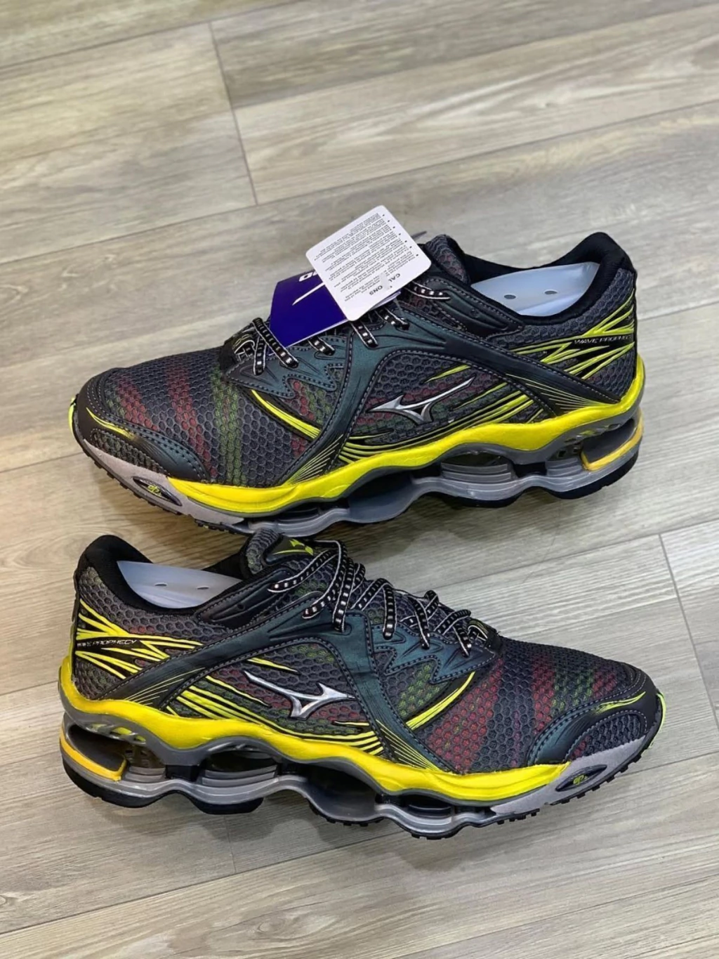O Mizuno Wave Prophecy 1 'Black/ Yellow Neon Fade' combina o visual clássico da primeira geração com uma das cores mais agressivas e modernas da linha. O cabedal escuro com mesh multicolorido, somado ao amarelo neon vibrante, cria um contraste poderoso que entrega presença, impacto e autenticidade máxima. Um Prophecy lendário, pensado para quem gosta de estilo chamativo e tecnologia real.